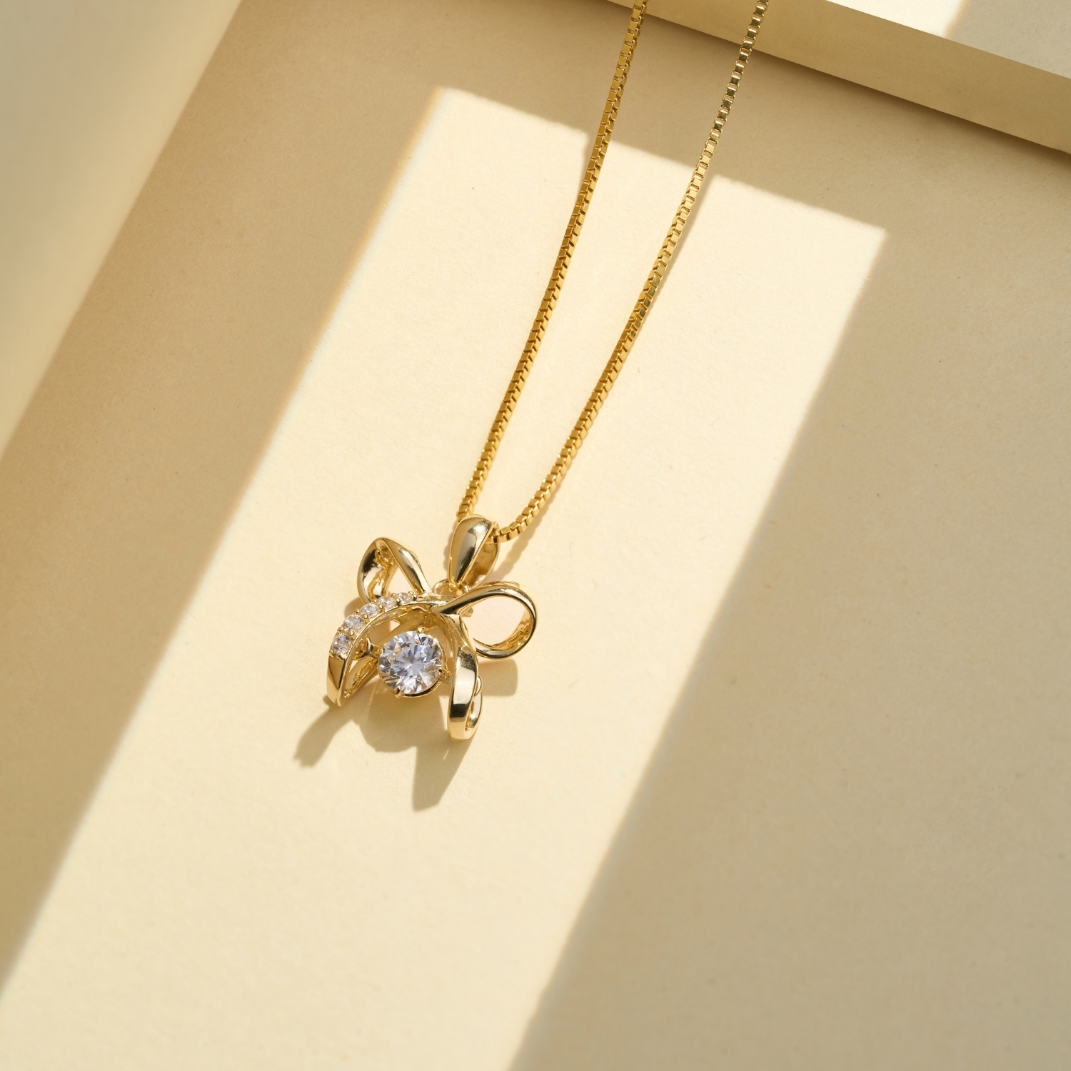 Tâm điểm là viên đá Moissanite khẽ rung chuyển theo từng nhịp chuyển động, phản chiếu ánh sáng tự nhiên như một ngọn lửa nhỏ ấm áp giữa trái tim.